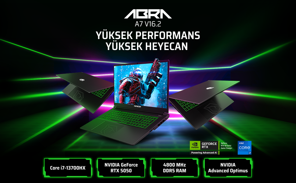 Monster Abra A7 V16.2.1 Intel Core i7 13700HX 16 GB RAM 1 TB SSD 8 GB RTX 5050 Windows 11 17,3" FHD 144 Hz Oyun Bilgisayarı
