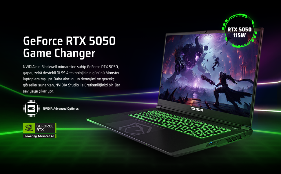 Monster Abra A7 V16.2.2 Intel Core i7 13700HX 32 GB RAM 1 TB SSD 8 GB RTX 5050 Freedos 17,3" FHD 144 Hz Oyun Bilgisayarı