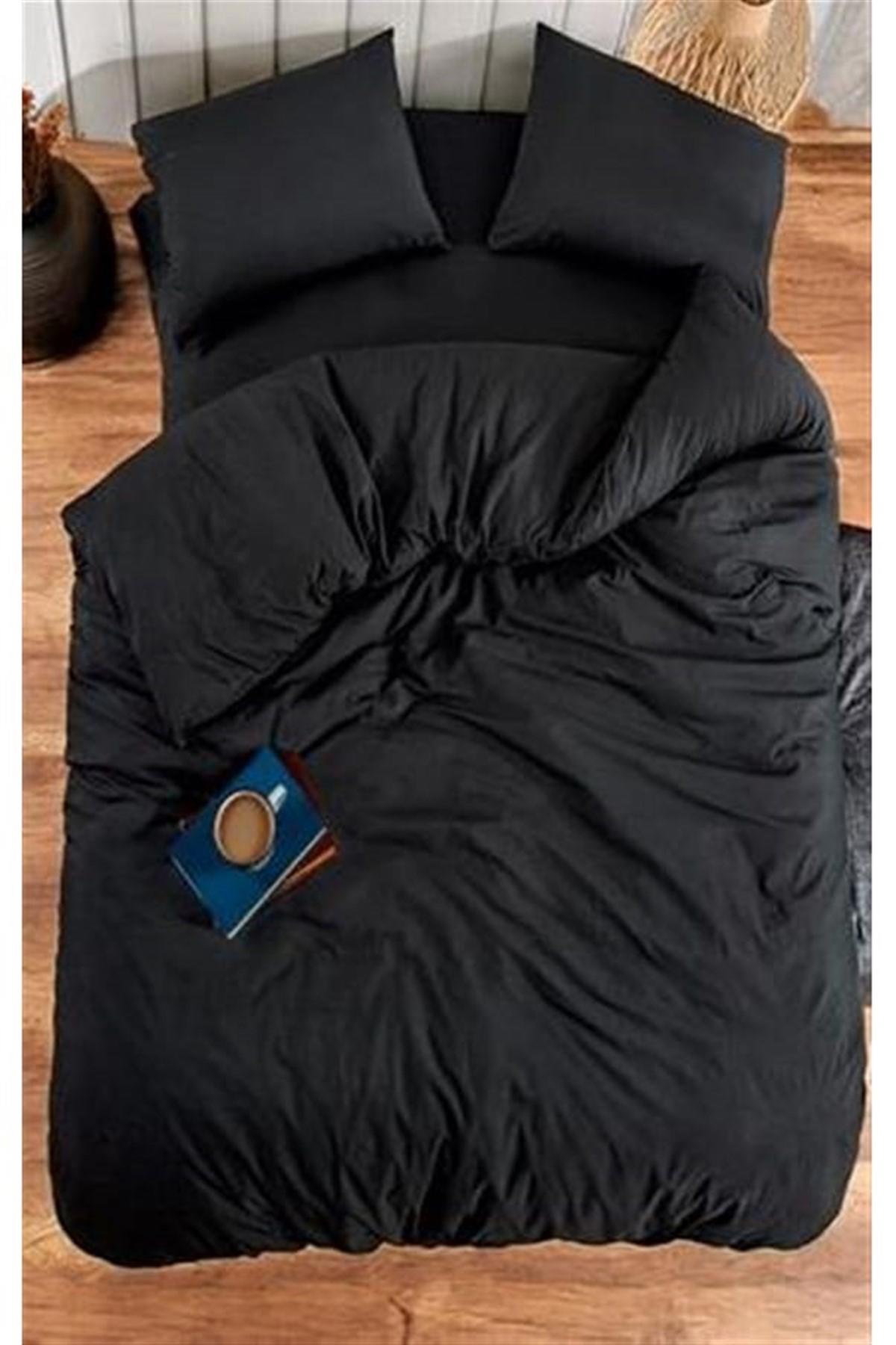 Çift Kişilik Nevresim Seti 2 Yastık Kılıfı Çarşafsız Siyah