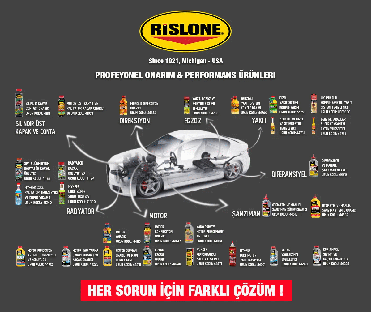 Motorunuz ilgiyi hak ediyor. Ona bir şişe Rislone Motor Onarıcı verin ve arabanızı yollarda güvenle sürün.