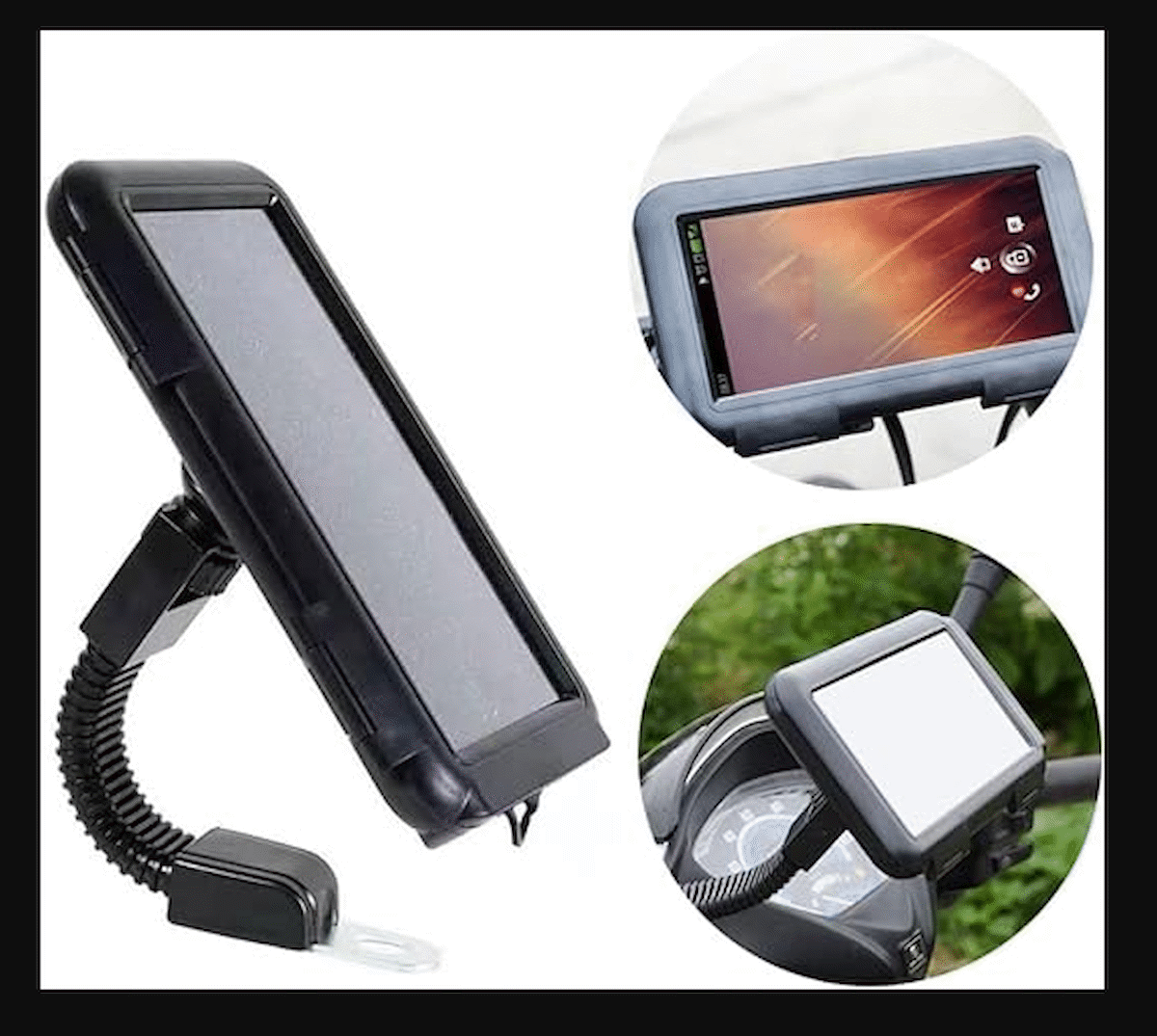 Bu cep telefonu kılıfı su, rüzgar ve toz geçirmez, böylece motosikletinizi sürebilir ve cep telefonunuzu kötü havalarda bile gezinmek için kullanabilirsiniz.