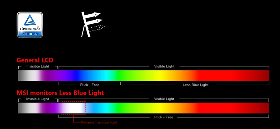 MSI monitörler, daha az mavi ışık yayarak gözleriniz yorulmadan ve görüntü kalitesinden ödün vermeden daha uzun süre oynamanıza olanak tanır.