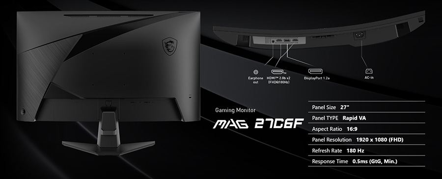 Zaferinizi MSI MAG 27C6F oyuncu monitörüyle görselleştirin. 1920x1080, 180Hz Yenileme hızı, 0,5 ms (GtG, Min.) yanıt süresi Rapid VA paneliyle donatılan MAG 27C6F, rakiplerinizi alt etmek için ihtiyacınız olan rekabet avantajını size sağlayacaktır. Adaptif senkronizasyon teknolojisiyle üretilen MAG 27C6F, ultra akıcı oyun deneyimi için ekranın yenileme hızını GPU'nuzla eşleştirebilir. Rekabetçi oyunlar için yerleşik MSI Gaming monitörlerdeki en son teknolojilerle hedefinize ulaşacağınızdan emin olun.