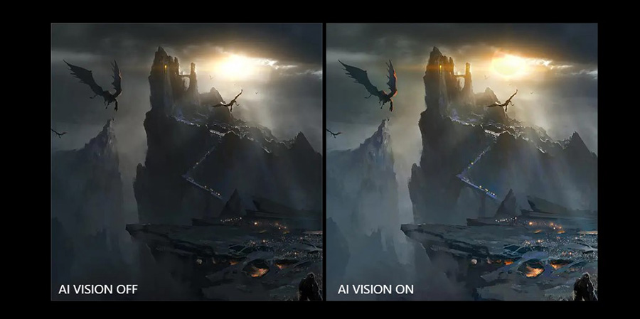 Yeni YZ destekli AI Vision teknolojisi karanlıkta kalan bölgeleri ortaya çıkarmakla kalmaz, aynı zamanda genel parlaklığı ve renk doygunluğunu da optimize ederek pırıl pırıl bir görüntü sunar.