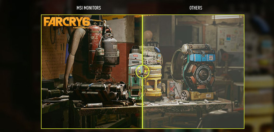 MSI monitör, sıradan monitörlere göre daha geniş bir renk gamına sahiptir. Böylece oyundaki renkleri daha gerçekçi ve canlı olarak deneyimleyebilir ve kendinizi oyunun tam içinde hissedebilirsiniz.
