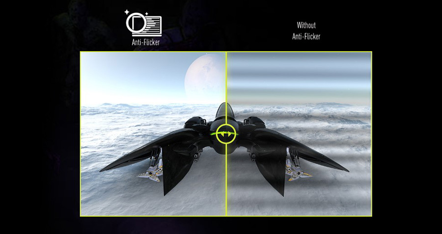 Standart monitör ekranları saniyede 200 kez titreşir. Normalde çıplak gözle görülemeyen bu kırpışma zaman içinde göz yorgunluğuna neden olur. MSI Anti-Flicker teknolojisi, bu kırpışma oranını büyük ölçüde azaltarak izleme deneyiminizi daha konforlu hale getirir.