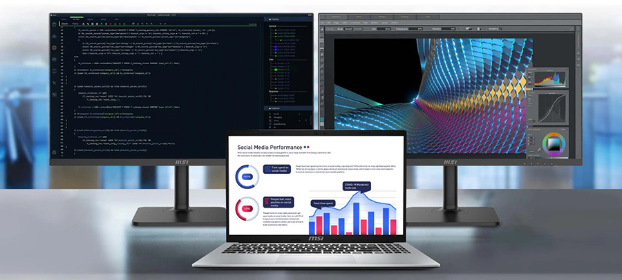HDMI™ ve Type-C portları üzerinden iki fazladan monitör bağlayarak 3 ekranlı bir (Matrix Display 1+2) konfigürasyon yapabilir ve multitasking ile kesintisiz bir üretkenlikte çalışabilirsiniz.