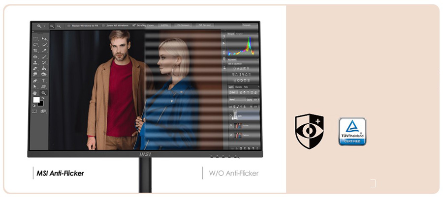 MSI Anti-Flicker teknolojisi sayesinde monitöre sabit akım ulaşır. Bu sayede göz kuruması ve göz yorgunluğu azalırken gelecekte okuma gözlüğü kullanma ihtiyacınız da azalacaktır