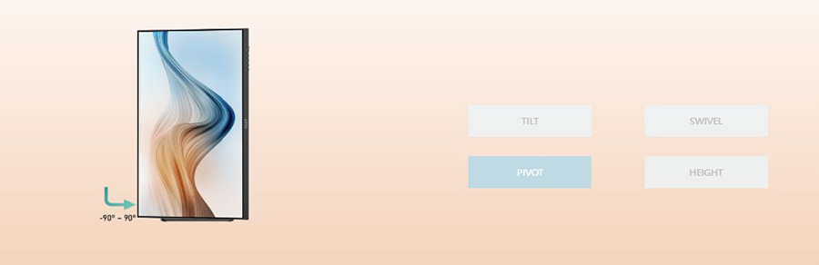 • TILT (Öne-arkaya dönme) - • SWIVEL (Sağa-sola dönme) - • PIVOT (Dikey kullanım) - • HEIGHT (Yükseltme)Modern MD272X serisi, kullanım alışkanlıkları ve yöntemlerine uyum sağlayabilmek ve kullanıcı dostu bir deneyim sunmak için dahice tasarlandı.