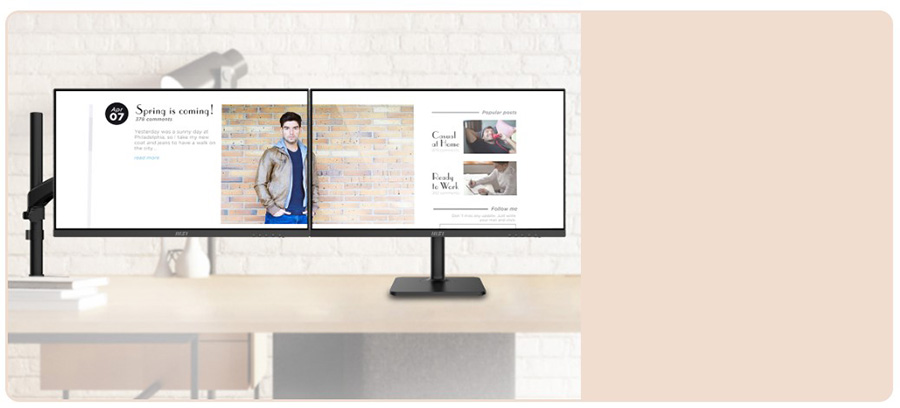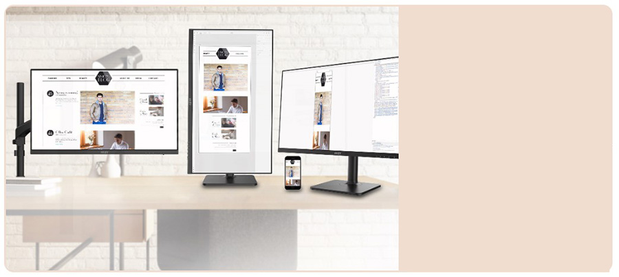 Daha düzenli bir kablo yönetimi için MSI VESA dirseği ile kullanın. VESA standardı desteği sayesinde e-ticaret ve m-ticaret materyallerinizi 3 ekranda rahatça takip edin.