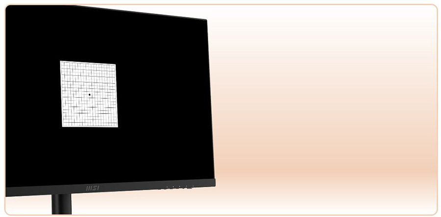 MSI, Amsler Grid testini yaparken herhangi bir çizginin bulanık, bozuk veya çarpık göründüğünü farkettiğiniz anda 20 dakika mola vermenizi tavsiye ediyor.