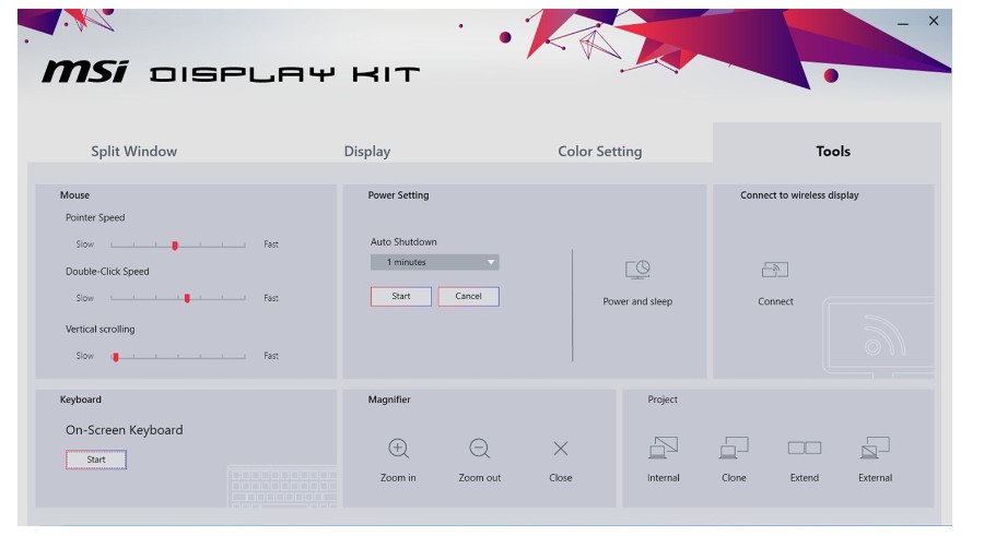 Günlük çalışmalarınızda en konforlu izleme deneyimi için MSI’ın özel Display Kit yazılımını kullanın. Görselleri ve metinleri en uygun şekilde görüntülemenin en rahat ve hızlı yolu! MSI'ın özel yazılımı olan Display Kit, günlük veya özel çalışmalarınızda hem renklerle çalışırken hem de metin okurken en uygun ayarları en kullanışlı bir şekilde yapmanıza yardımcı olur.
