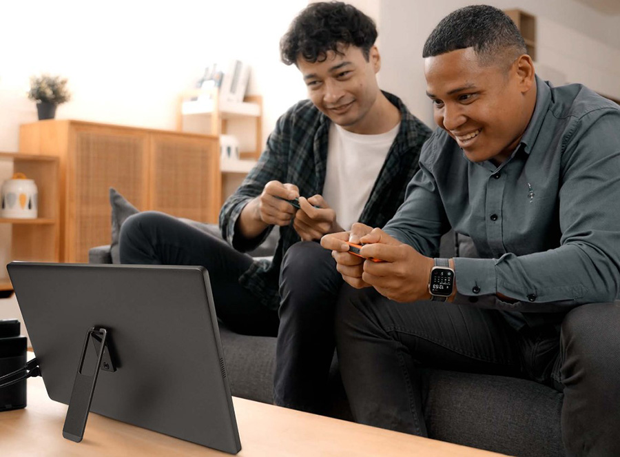 PRO MP161 E2 taşınabilir monitör ile her şeyi ortağınızla paylaşabilir veya telefon ekranınızı yineleyebilir veya görüntüyü ikinci ekrana genişletebilirsiniz.