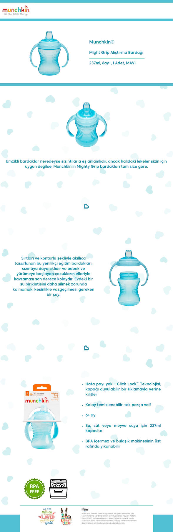 Munchkin Might Grip Alıştırma Bardağı, 237ml,6ay+ 1 Adet ,MAVİ
