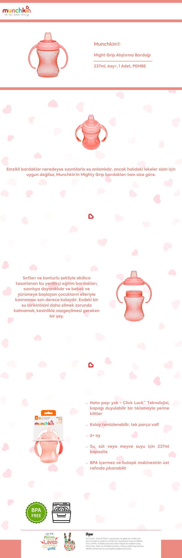 Munchkin Might Grip Alıştırma Bardağı, 237ml,6ay+1 Adet ,PEMBE