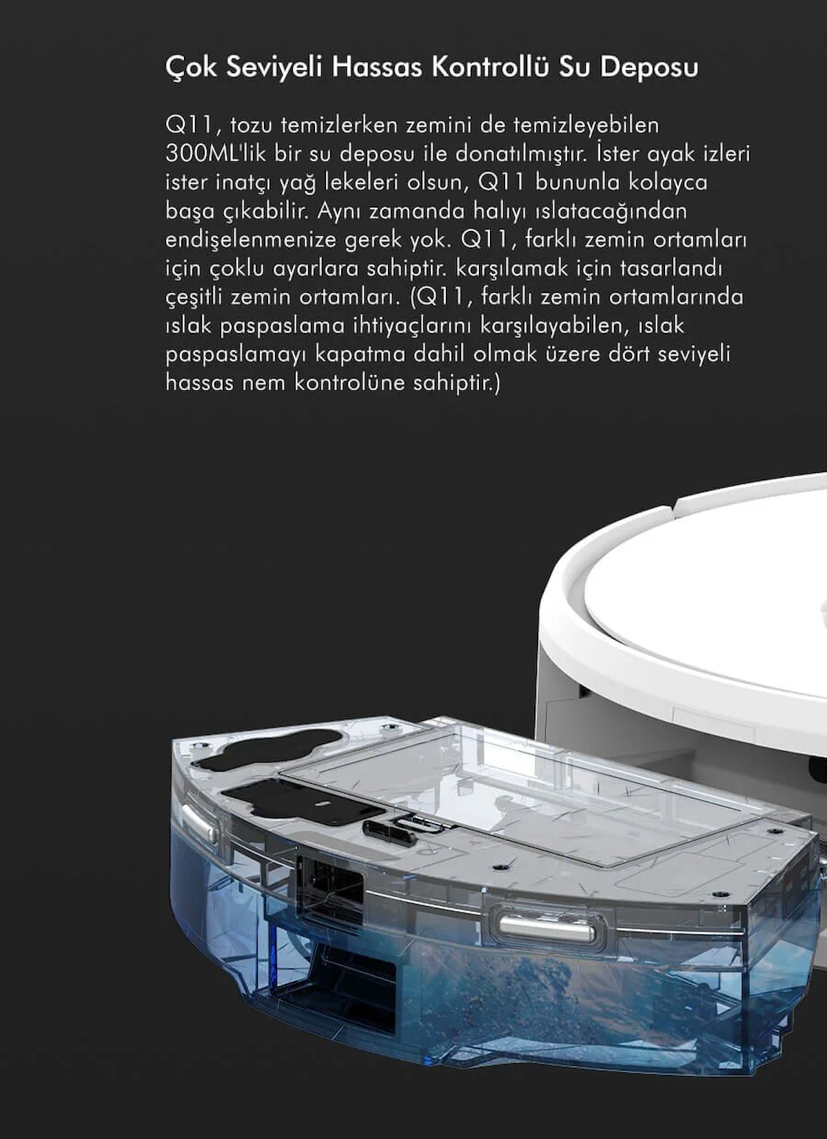 Cihaz Amazon Alexa ve Google Asistan ile yönetilir. Hem silen hem süpüren robot süpürge özelliği bulunur.