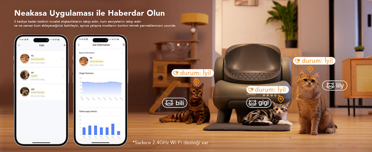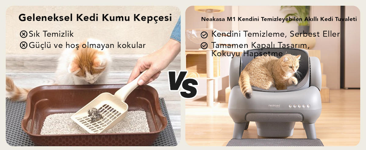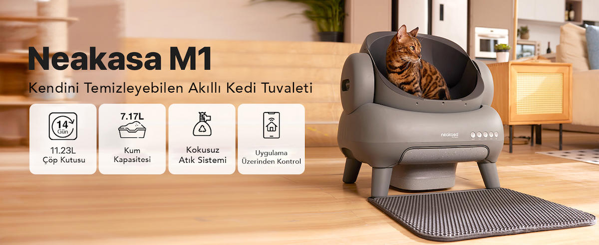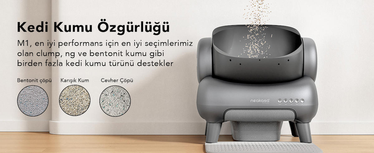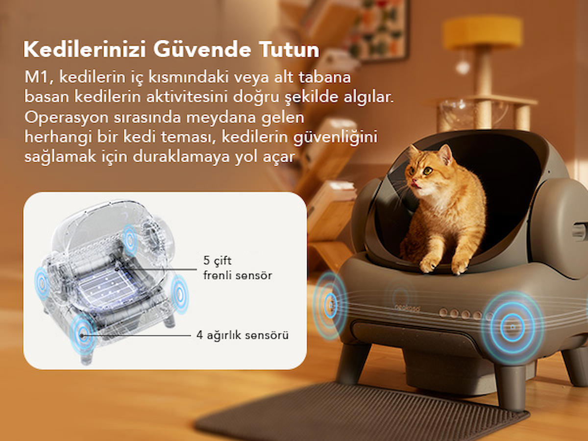 Üstü Açık Tasarım: Geleneksel kedi kumu kutuları ve piyasada bulunan yandan açılır kendi kendini temizleyen seçenekler genellikle bir dizi ortak sorunla birlikte gelir. Bunlar arasında evinize sızan aşırı ve rahatsız edici kokular ve daha büyük kedi dostları için özellikle tehlikeli olabilen daha küçük yan açıklıklardan kaynaklanan güvenlik endişeleri yer alır. Neakasa M1 üstü açık, temiz bir iç mekan sağlar ve kediler için güvenli bir koruma ortamı sunar. Çek ve Sar Atık Çözümü: Neakasa M1 akıllı tasarımı sorunsuz, kokusuz bir deneyim sağlar. Hızlı bir çekişle çöp torbasını güvenli bir şekilde sarar, hiçbir iz veya kötü koku bırakmaz. Sık temizlik ve güçlü kokulara elveda deyin ve kedi konforu ve temizliğini kucaklayın, 10-14 gün kepçesizliğin tadını çıkarın. Arkadaşınızı Güvende Tutun: M1 otomatik kedi kum kabı, kedilerin içerideki aktivitesini ve hatta alt tabana basmasını doğru bir şekilde algılayan 5 çift kızılötesi sensör ve 4 ağırlık sensörü ile donatılmıştır. Çalışma sırasında meydana gelen herhangi bir kedi teması, kedilerin güvenliğini sağlamak için bir duraklamaya yol açacaktır. Neakasa Uygulaması ile Haberdar Olun: Uygulamamız ile kedilerinizin banyo rutinlerini zahmetsizce yönetin. En fazla 3 kedinin banyo alışkanlıklarını izleyin, kum seviyelerini takip edin, ne zaman kum ekleneceğini öğrenin ve çalışma modlarını parmaklarınızın ucunda uzaktan kontrol edin.