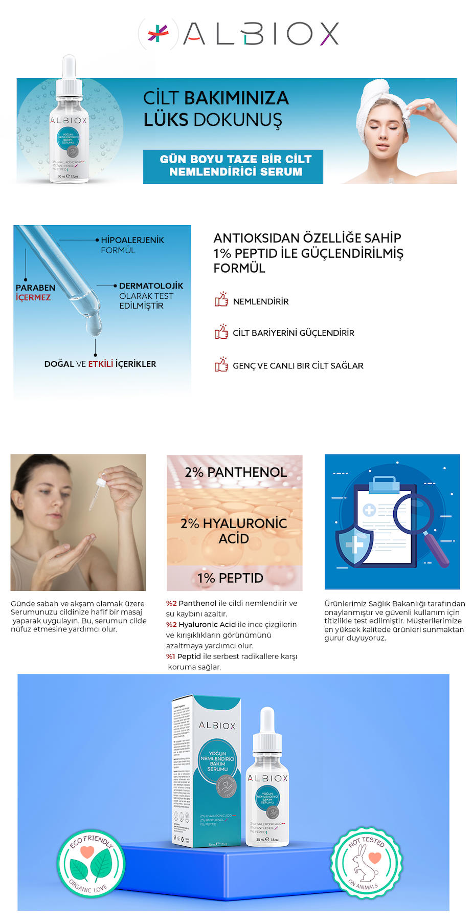 Nemlendirici Bakım Serumu Hyaluronic Acid + Phanthenol + Peptid 30 ml