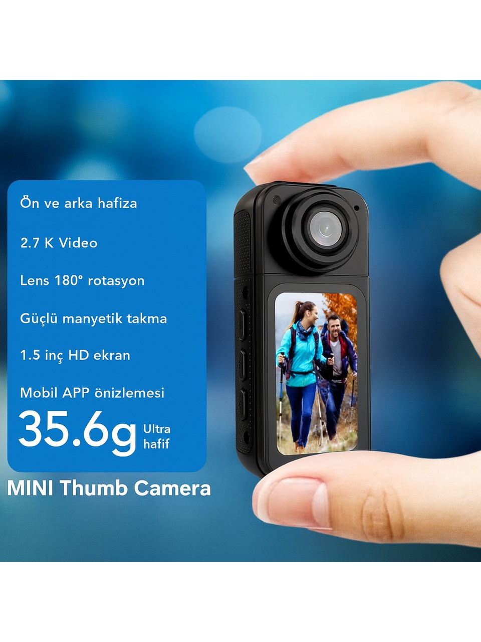 HD 1.5” Ekran: Net ve canlı görüntülerle videolarınızı anında izleyin, dosyaları görüntüleyin veya tek dokunuşla silin.