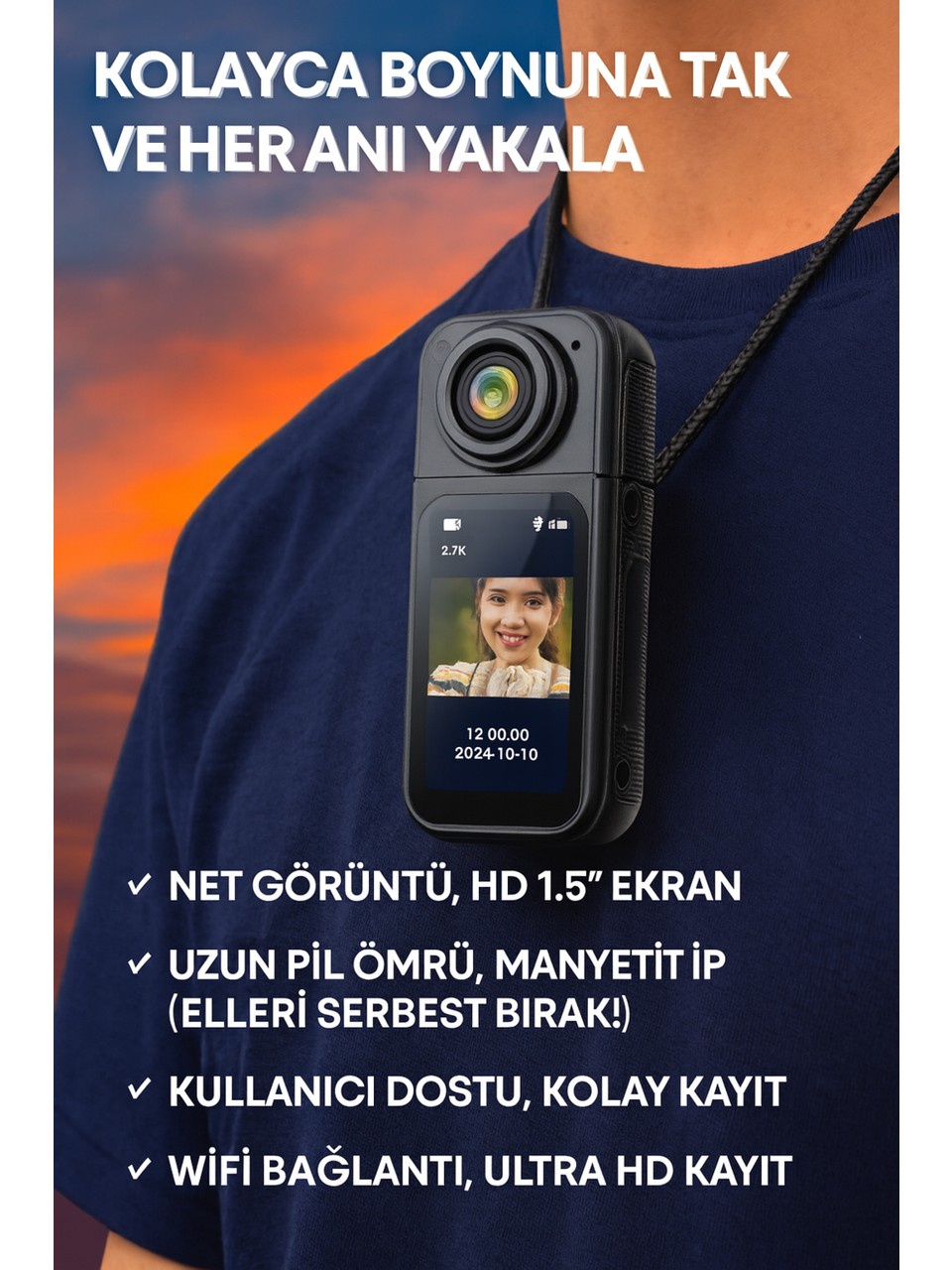 Uzun Pil Ömrü: Tek şarjla 180 dakikadan fazla kesintisiz kayıt yapabilir, manyetik askı ipi ile boynunuza takıp ellerinizi özgür bırakabilirsiniz.