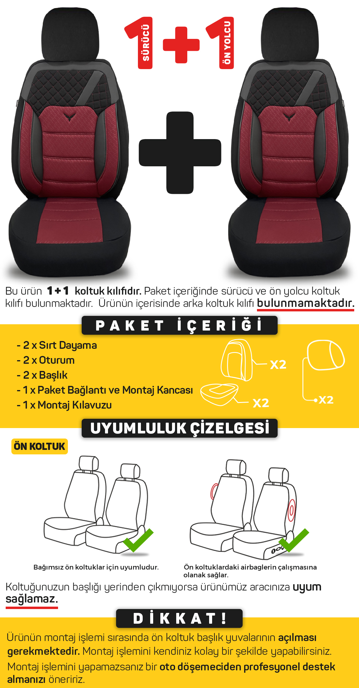 Pandami K1 Serisi Oto Koltuk Kılıfı 1+1 Set, Gofraj / Bordo, Peugeot 407 2004-2011 ile Uyumlu