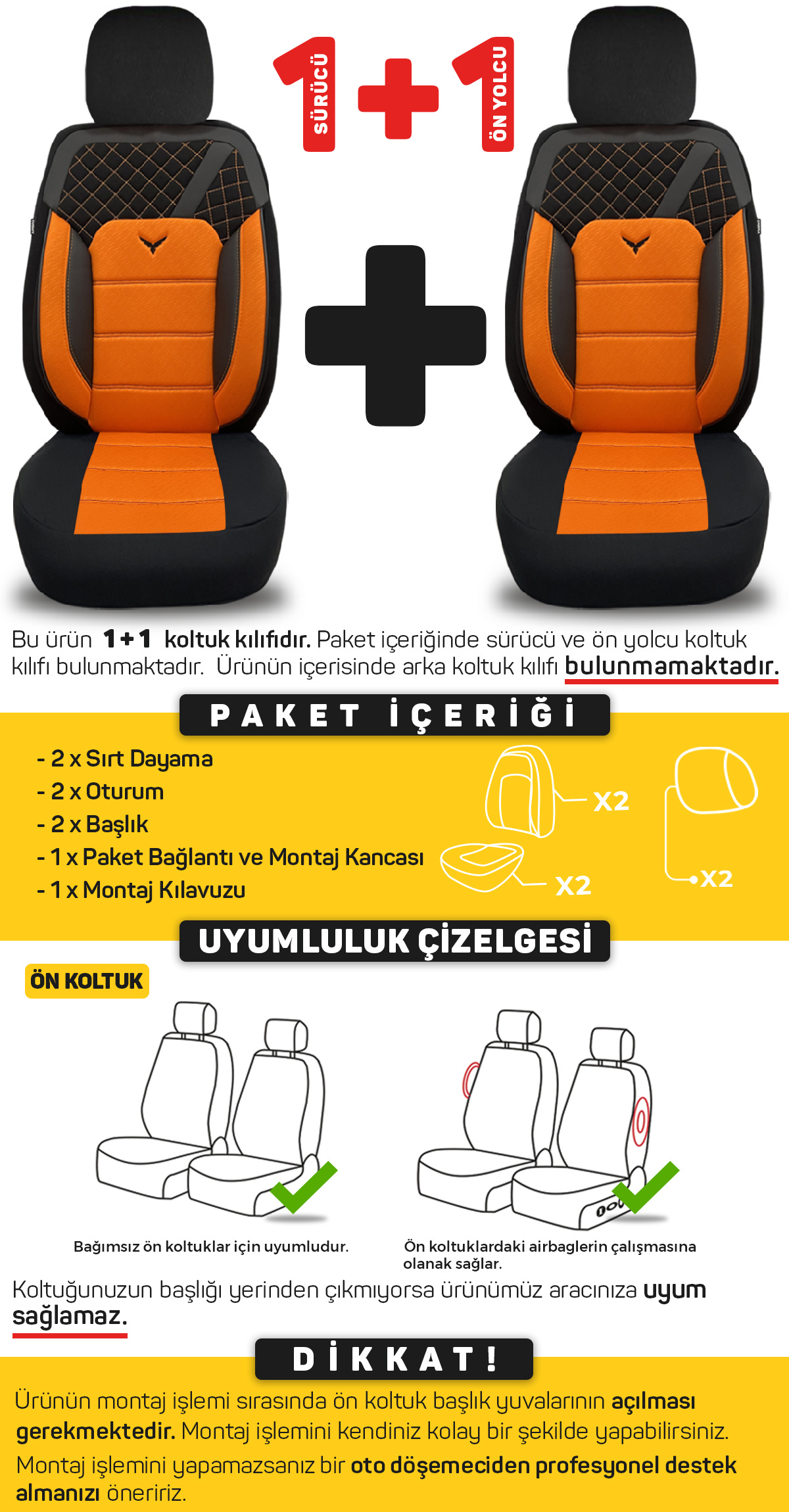 Pandami K1 Serisi Oto Koltuk Kılıfı 1+1 Set, Gofraj / Turuncu, Lexus CT 200h 2010 ile Uyumlu