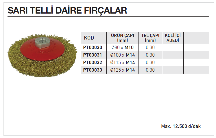 Partner PT03031 100*M14 Sarı Telli Daire Fırça