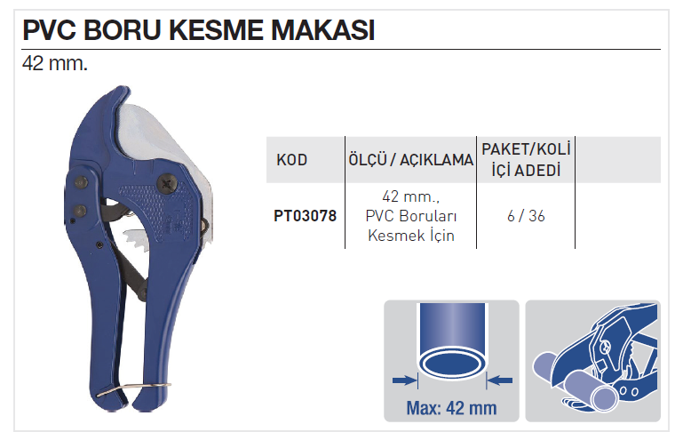 Partner PT03078 PVC Boru Kesme Makası 42mm