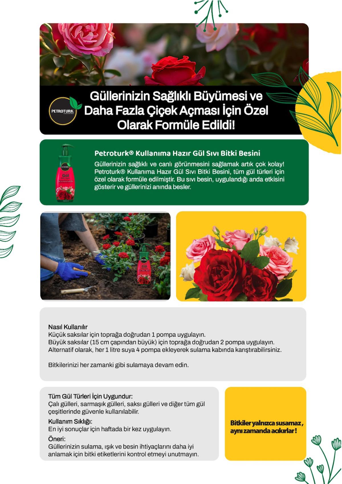 Petroturk Gül Sıvı Bitki Besini Kullanıma Hazır