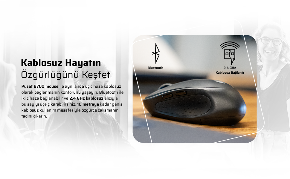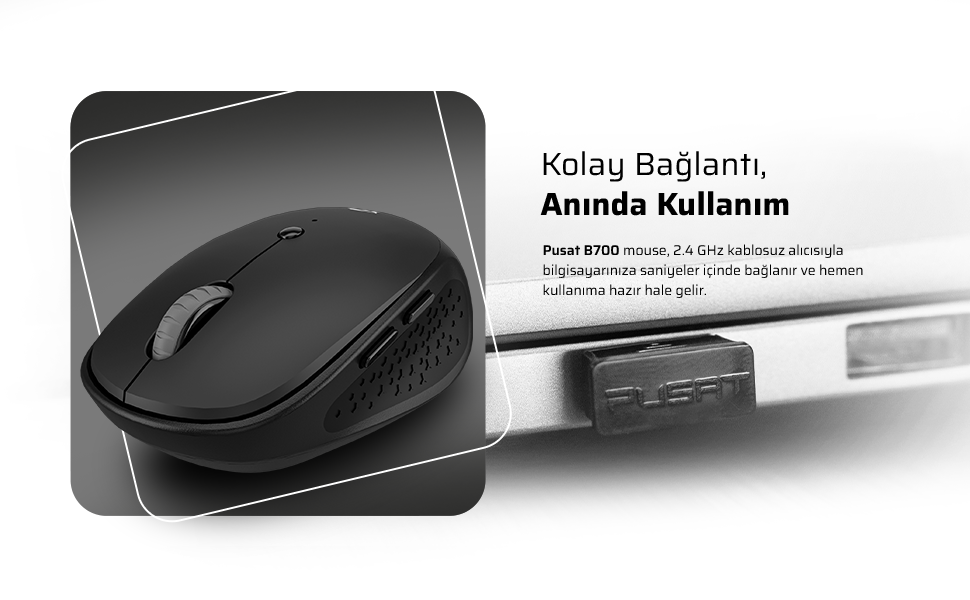 Pusat Business B700 2400 DPI Sessiz Kablosuz Mouse Siyah