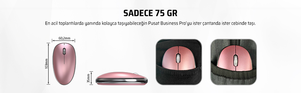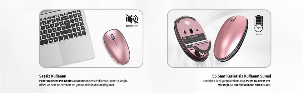 Pusat Business Pro Sessiz Kablosuz Şarjlı Kompakt Mouse - Rose Gold