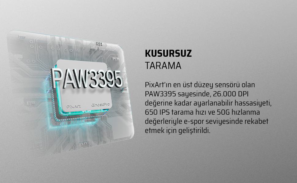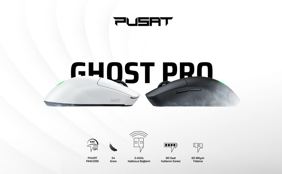 Pusat Ghost Pro 54Gr 26000 DPI 650 IPS Kablosuz RGB Oyuncu Mouse - Beyaz