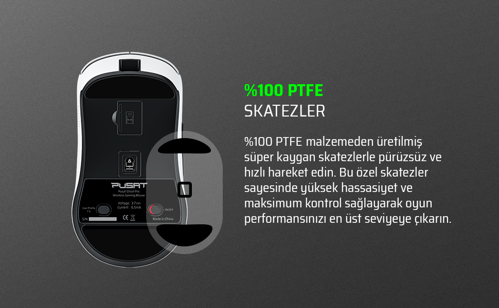 Pusat Ghost Pro 54Gr 26000 DPI 650 IPS Kablosuz RGB Oyuncu Mouse - Siyah
