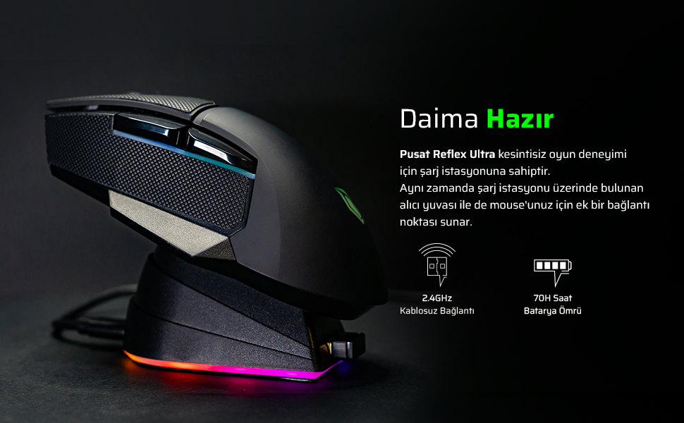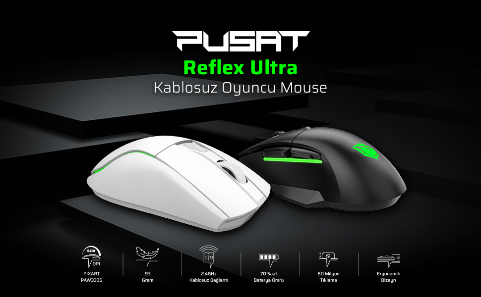 Pusat Reflex Ultra 16000 DPI 400 IPS Yüksek Performanslı Kablosuz RGB Oyuncu Mouse- Beyaz