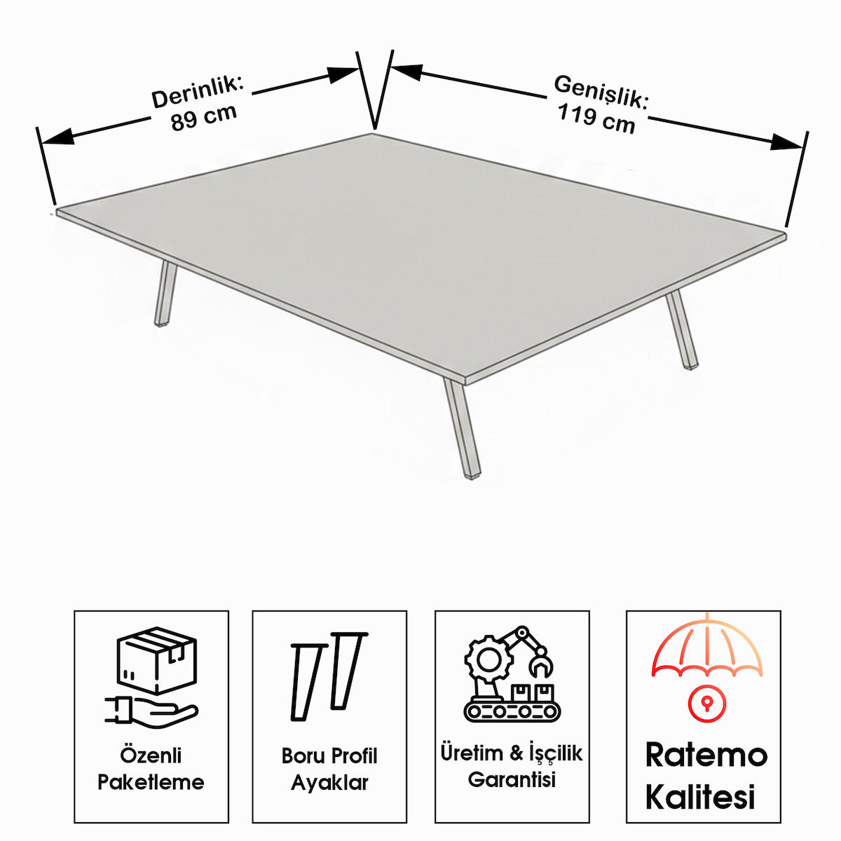✔ Dayanıklılık:Sağlam metal ayaklar ve kaliteli suntalam tabla