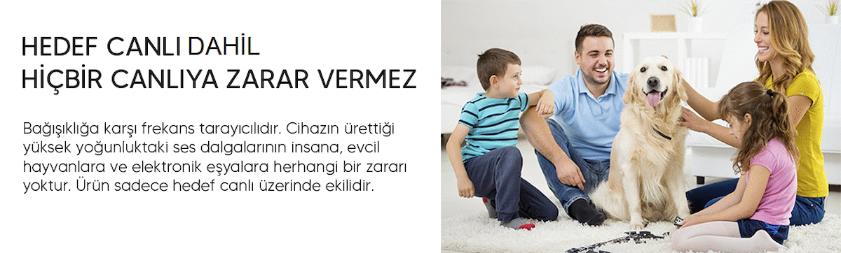 Ultrasonik Cihaz hedef canlı dışında herhangi bir canlıyı ekilemez. Fare kovucu cihazın çalışması için ürünü 220 V prize takmanız yeterlidir.