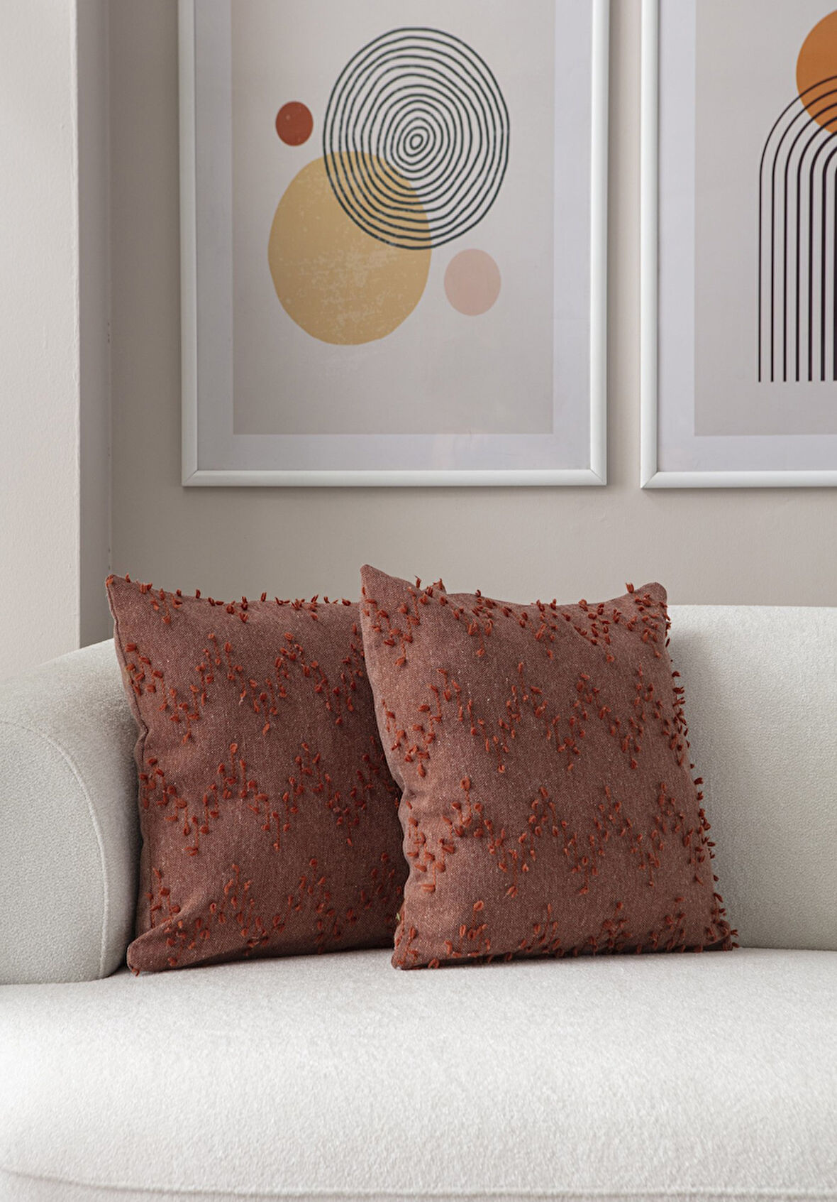 Ritim Desenli Punch İşlemeli Keten Kırlent Kılıfı 43x43cm, Dekoratif Kırlent Kılıfı