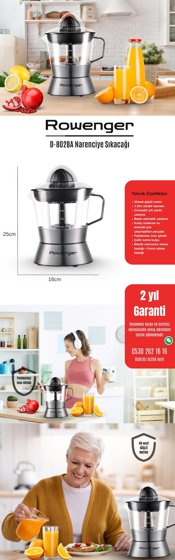 Rowenger D-8028A İnox Narenciye Sıkacağı Meyve Sıkacağı Portakal Sıkacağı