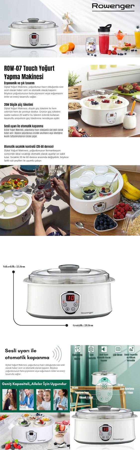 ROW-07 Touch Dijital Yoğurt Makinesi ile evde yoğurt yapmak artık çok kolay ve keyifli. Siz de sağlıklı ve lezzetli yoğurtların tadını çıkarın.