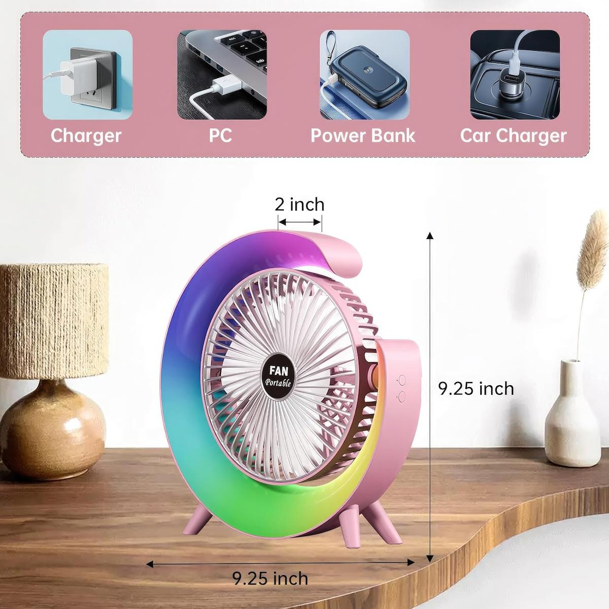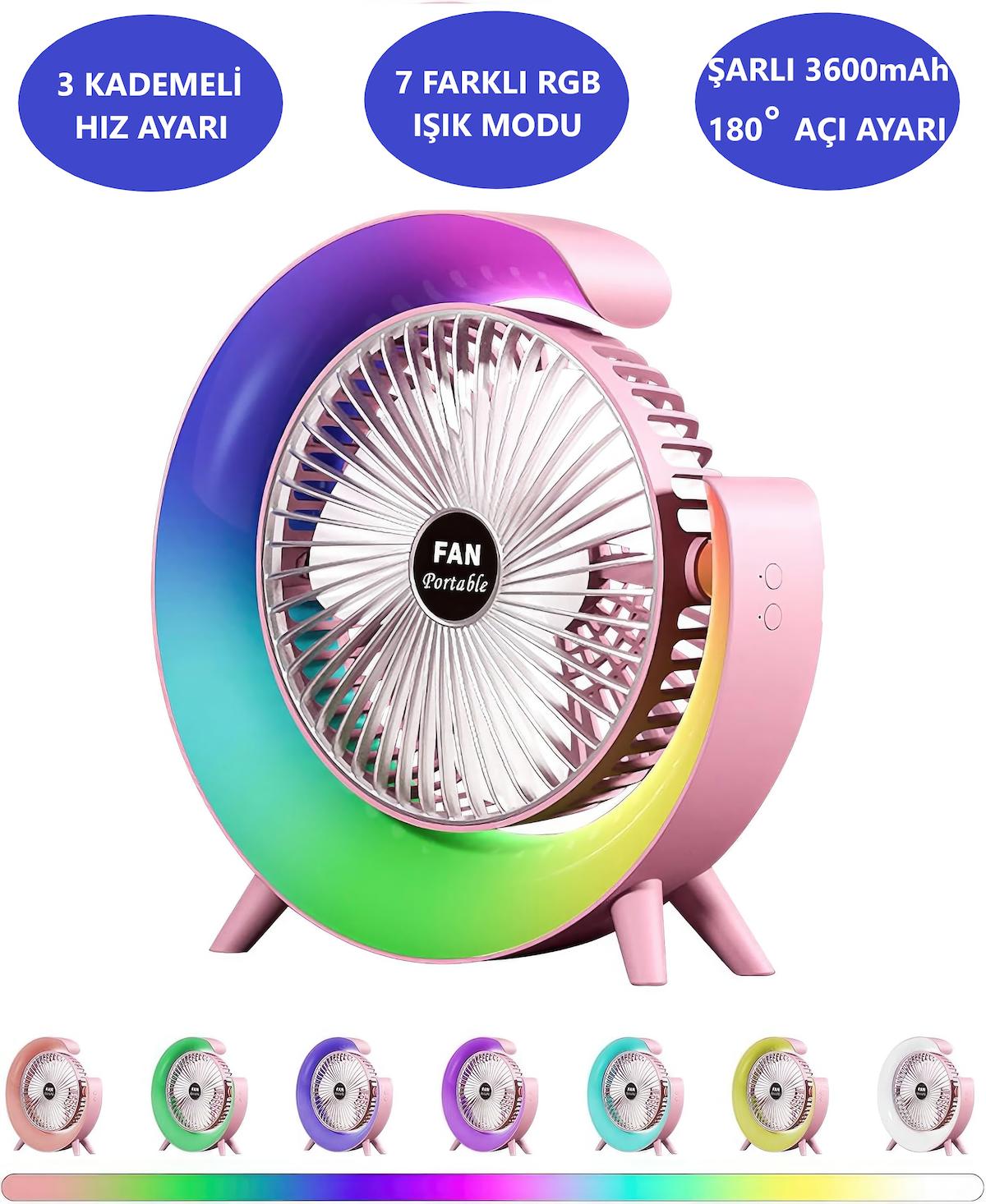 🌈 RGB Işıklı Şarjlı Masaüstü Fan ile Serinliğin ve Renklerin Keyfini Çıkarın!