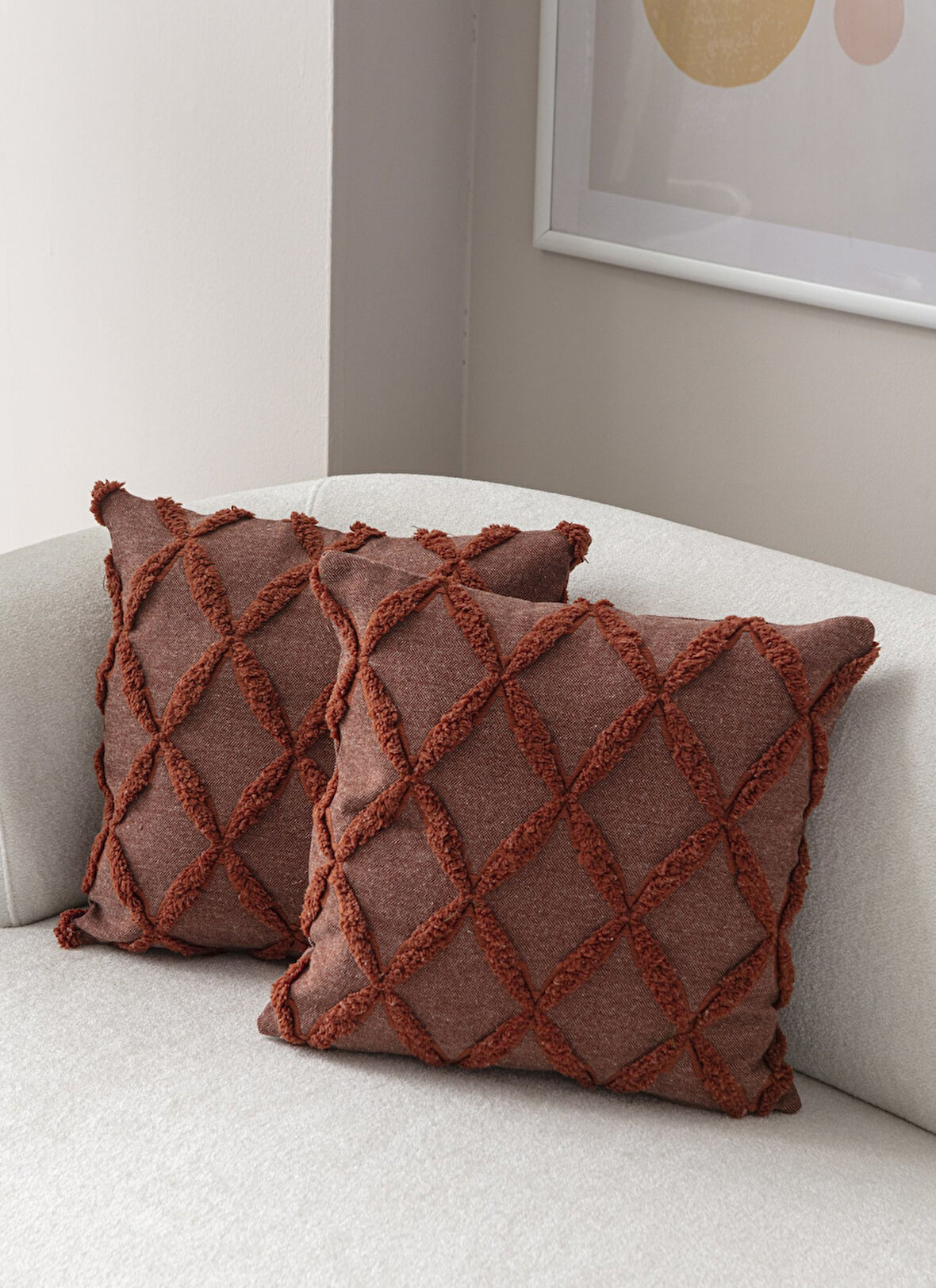 Sarmal Desenli Punch Işlemeli Keten Kırlent Kılıfı, Puantiyeli Kırlent Kılıfı, 43x43cm
