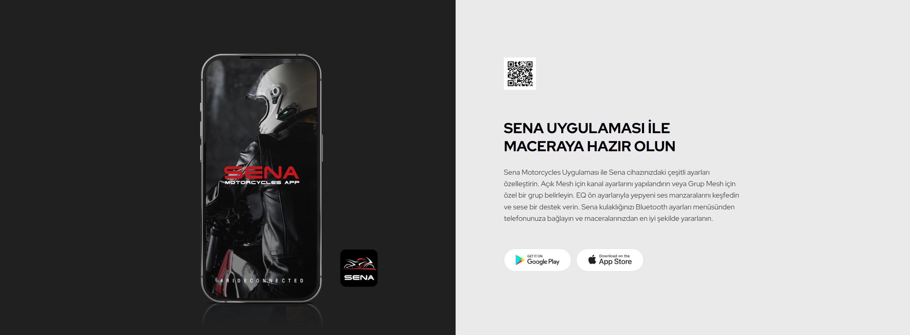 - Sena Motorcycles App ve QR kod kolaylığını yaşayın. Cihazlarınızı anında eşleştirin ve yola çıkın!