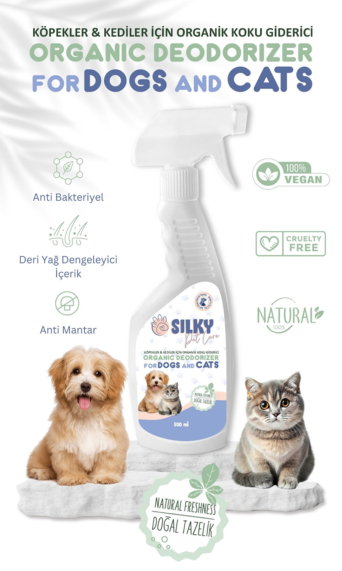 SILKY - Köpekler için ORGANİK Koku Giderici Spreyi (500ml )