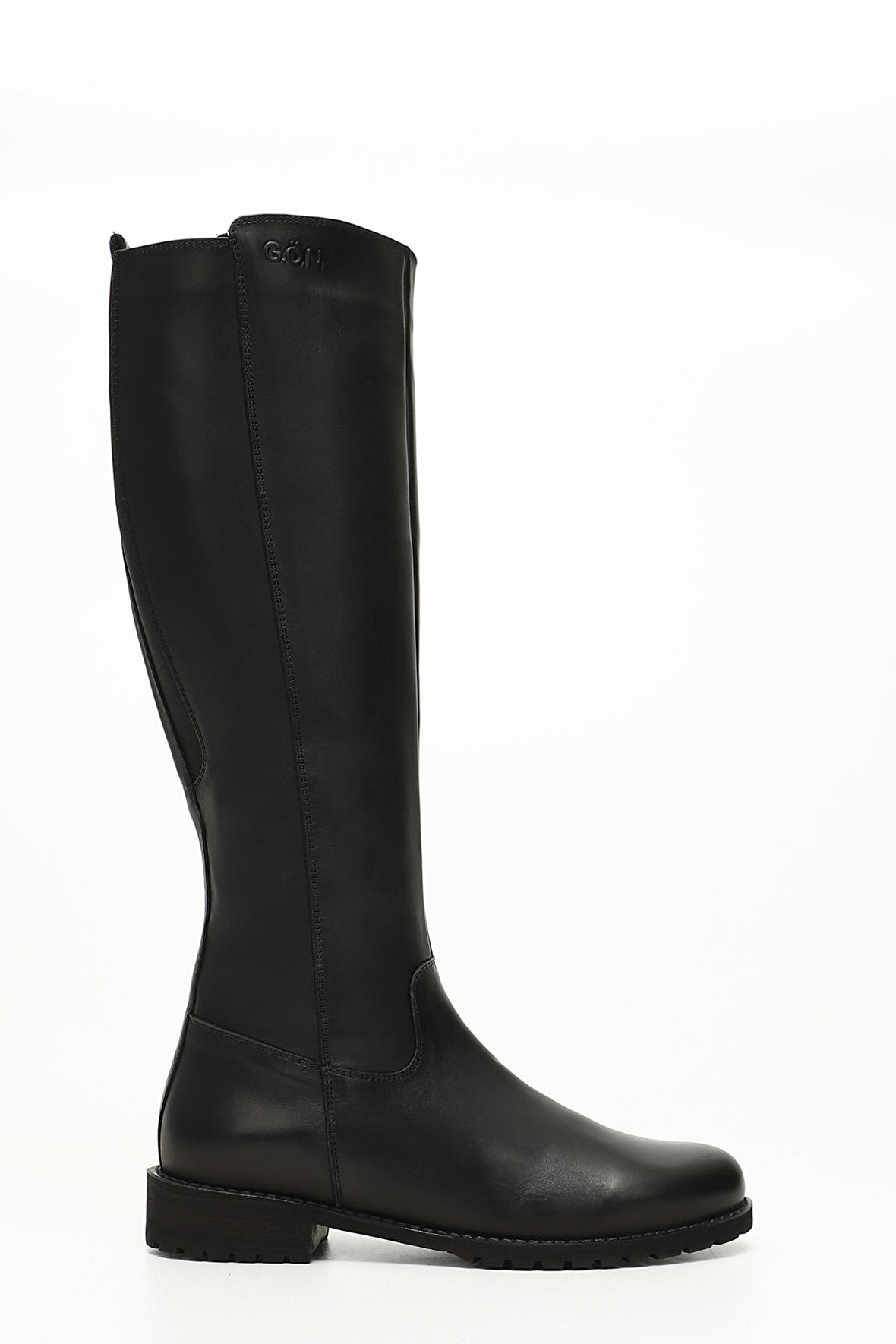 SİYAH Gön Hakiki Deri Yuvarlak Burun Kauçuk Taban Topuklu Fermuarlı Kadın Günlük Çizme 44551