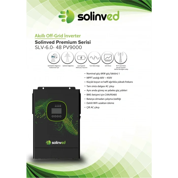 Solinved 6.0 kW Gordion Serisi MPPT Off-Grid İnverter – Tam Sinüs, Yüksek Frekans, WiFi İzleme