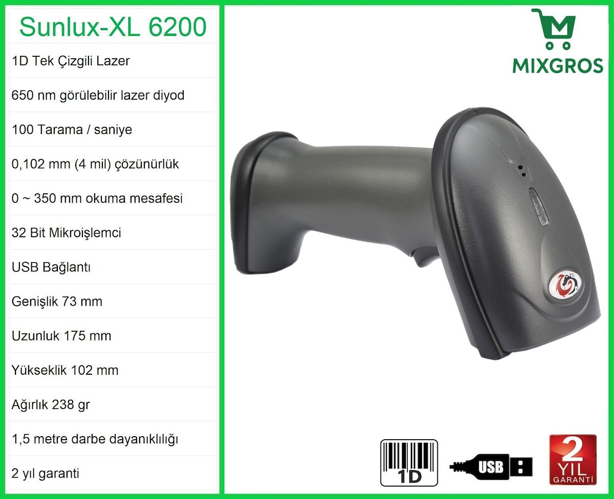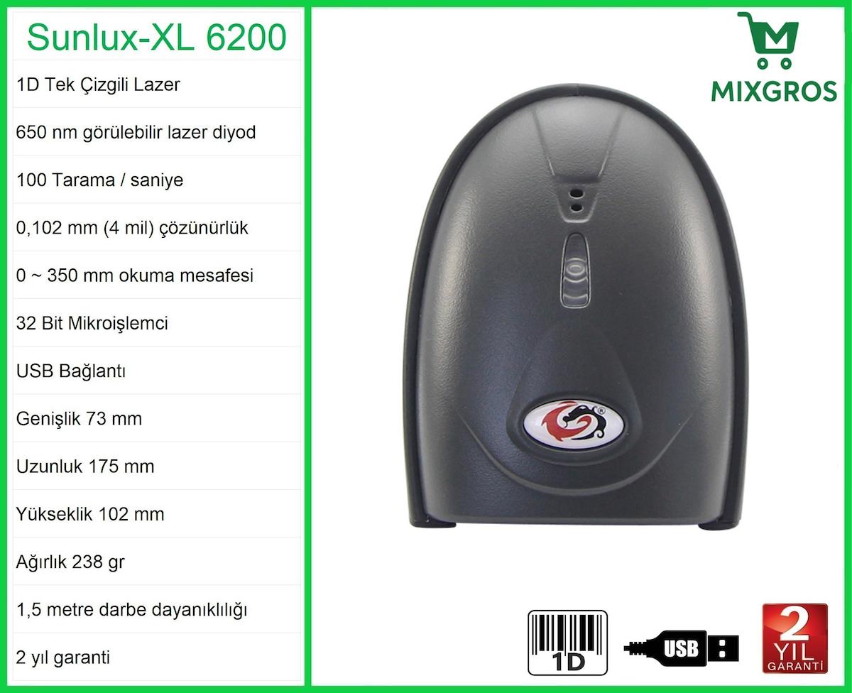Sunlux XL-6200 el tipi lazer barkod okuyucu, bilgisayarlı bilgi sistemleri için doğru, kolay ve hızlı bir veri girişi ve veri depolama yöntemi sağlar. XL-6200, kızılötesi otomatik sensor teknolojisine sahiptir. Kullanıcının tek yapması gereken, barkodu pencerenin önündeki algılama alanına yerleştirmektir. 650 nm lazer otomatik olarak etkinleştirilir. Ardından, taranması gereken barkoda doğrultulan tarayıcı otomatik olarak tarar ve bilgiler ana bilgisayar sistemine iletilir. Bu ürün için iki mod vardır. Elde taşınabilir ve otomatik algılamalı lazer barkod tarayıcı. Bu, kullanıcının cihazı elde taşınabilir modda veya braketle sabitleme olarak kullanabileceği anlamına gelir. XL-6200, herhangi bir ana bilgisayar sistemine entegre edilebilir.