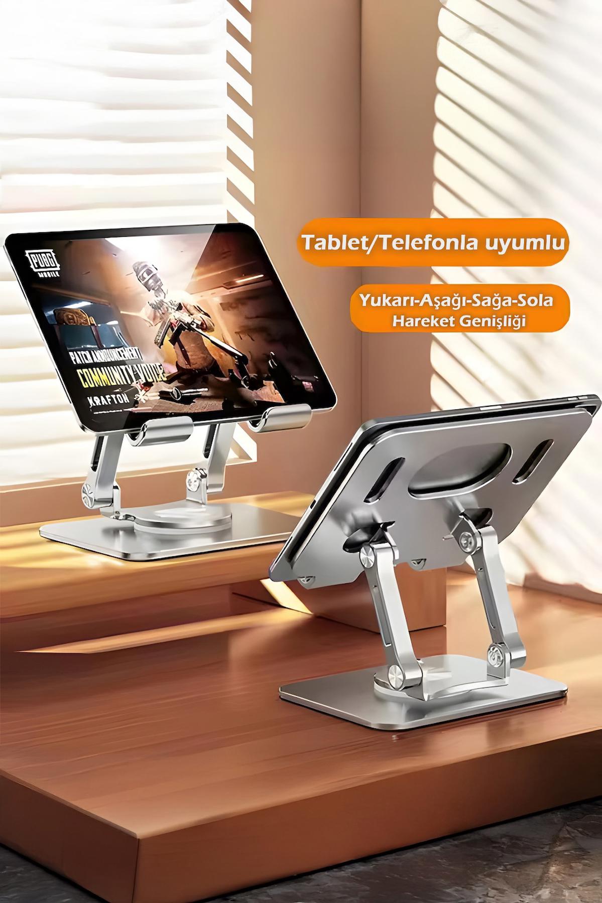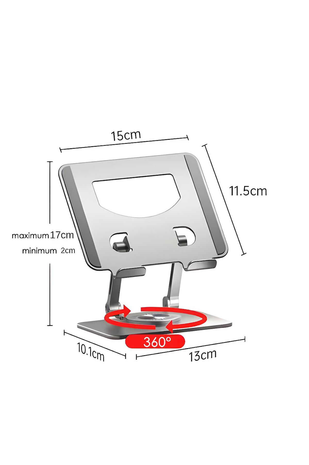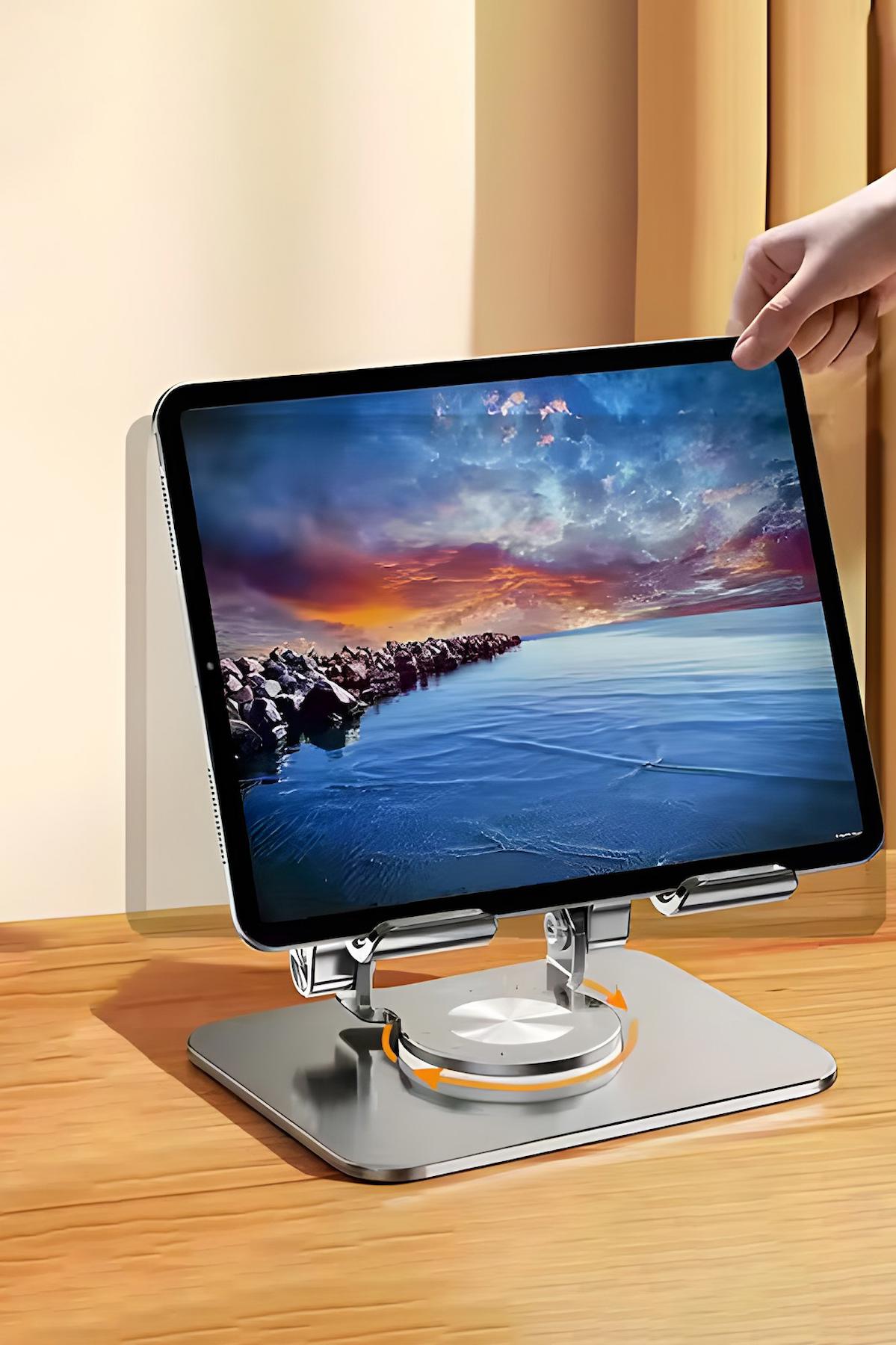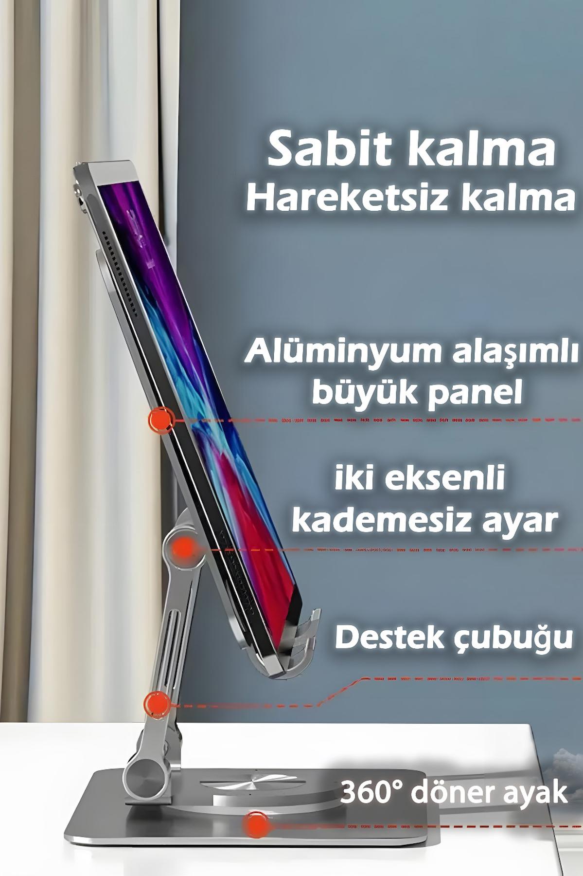 360\u00b0 Döndürme: Büyük bir 360\u00b0 dönen şasi ile donatılmıştır.Daha esnek dönüş için tabana iki aks bağlanır ve stand, tableti istediğiniz açıya döndürmenize olanak tanır.