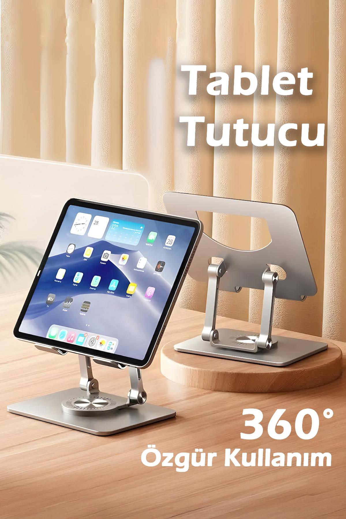 Tablet tutucu, 360 ° Dönebilen Tablet Standı, Metal Tablet Tutucu, Ayarlanabilir Katlanabilir Masaüstü Standı Tutucu , Katlanabilir Metal Tablet Tutucu, Telefon Tutucu Stant, 4.7-12 Inç Ipad Pro/Hava/Min Dizüstü Tablet için Uyumlu, Tablet Tutucu Metal (Açık Gri)