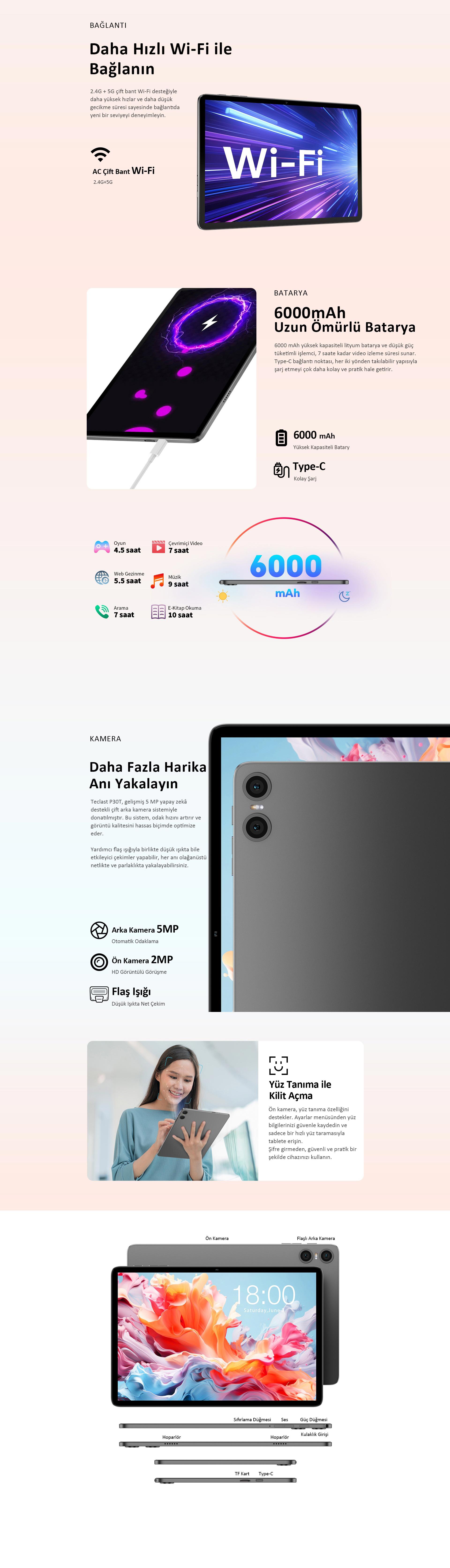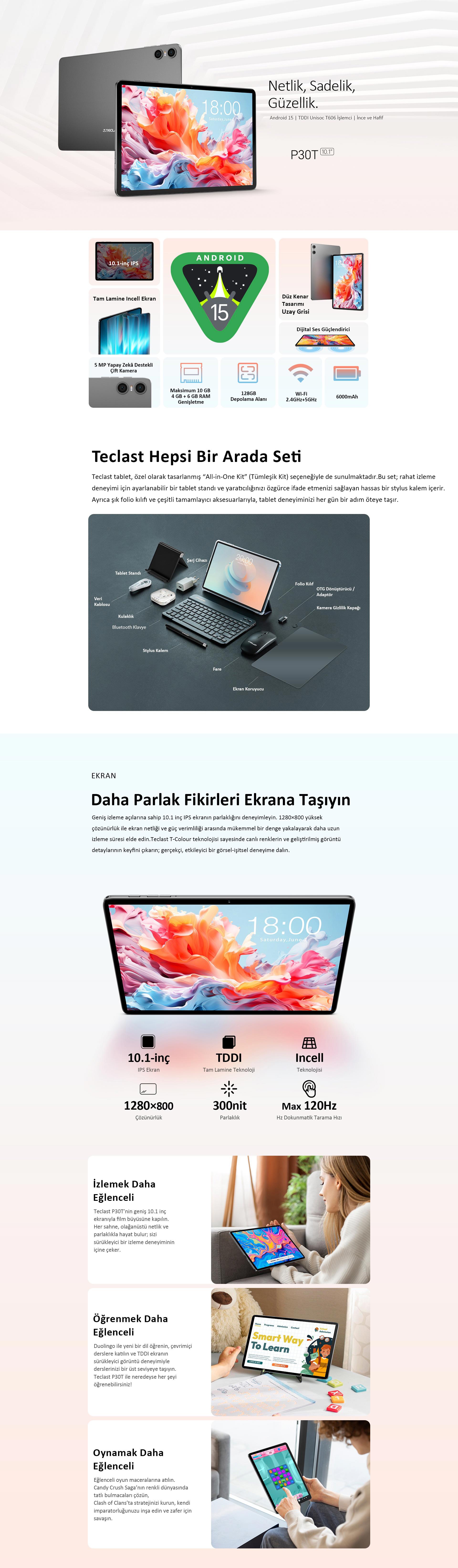 Teclast P30T 4/128GB Gri (Evofone Garantili)