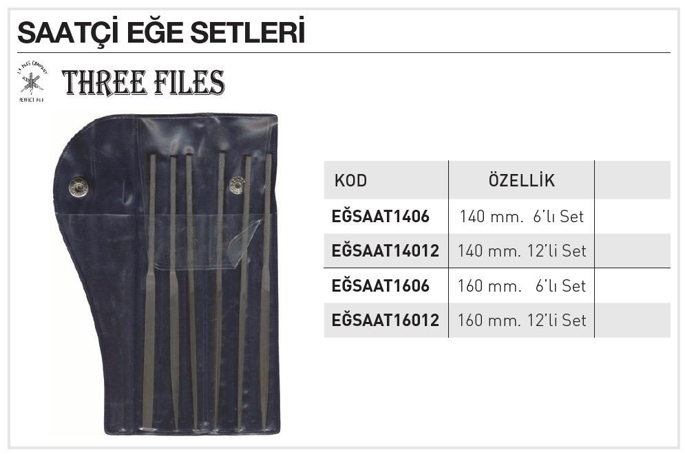 Three Files EĞSAAT1406 140mm 6’lı Saatçi Eğe Seti